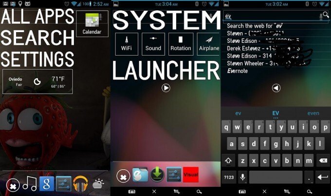 Hax Launcher propone un concepto de launcher algo diferente. Contamos con la clásica pantalla de inicio y con el mismo cajón de aplicaciones que en Android 4.0 y 4.1, la única diferencia se encuentra en que para acceder a dicho box, tenemos que pasar por una pantalla intermedia en la que encontraremos accesos al buscador, a aplicaciones concretas o a los ajustes (que muestran una barra de ajustes rápidos). Probablemente lo entenderéis mejor con este video que han hecho en XDA.