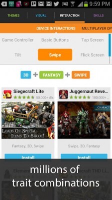 La segunda, la de las búsquedas, es la que tiene toda la chicha; en ella podemos crear las listas personalizadas tanto de app’s como de juegos. Para ello es tan sencillo como seleccionar la categoría principal (productividad, social, entretenimiento…) y a partir de ahí, aplicar los filtros deseados.