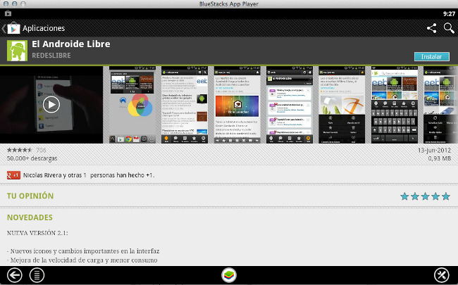 Ya hablamos en su momento de la versión de Bluestacks para Windows, pero por fin se ha anunciado el lanzamiento de la versión para sistemas Mac, aunque por ahora permanece en estado beta, aunque en las pruebas que hemos realizado las apps funcionan perfectamente en Mountain Lion. Este programa emula el funcionamiento de una tablet con Android, por lo que hay que tener en cuenta que el rendimiento nunca será el mismo que con un dispositivo real. Sin embargo, es mas que suficiente para probar aquellas aplicaciones que nos interesen porque su interfaz sea mas sencilla de manejar que la aplicación de escritorio.