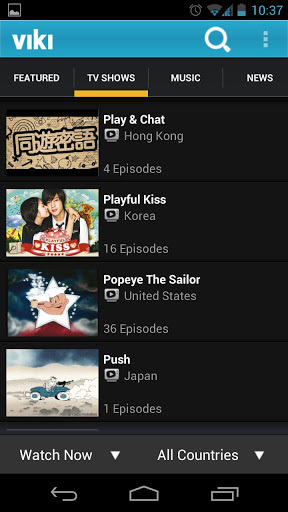 Viki funciona tal y como estamos acostumbrados a usar YouTube. No os esperéis algo de su tamaño, pero podemos encontrar bastante material. La aplicación se divide en 5 pestañas: destacados, shows de televisión, música, noticias y películas. En cada uno de ellos encontraremos todo un repertorio de vídeos de esa categoría. Las cargas son muy rápidas y por WiFi no me ha dado ningún parón. La calidad también es excelente.