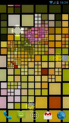 La velocidad con la que se destapa la foto la elegimos de entre las diferentes opciones, y ahí seleccionamos también el tipo de mosaico que queremos. Las animaciones son muy buenas, y muy cuidadas, creando unos efectos luminosos alrededor de los cuadros según éstos se van reduciendo. Al igual que la velocidad, podemos elegir la dureza de los cuadros, la cantidad de efecto que deseamos darle, la forma en que se «desmontan»…vamos, una gozada. Además, no solo es un simple fondo animado, sino que es interactivo, y según vamos desplazando el dedo sobre la pantalla, vamos destapando partes de la imagen.