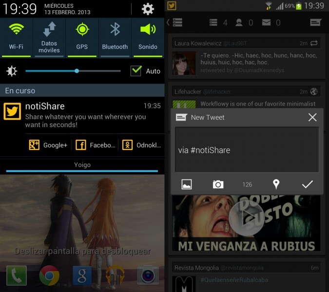 Tus redes sociales siempre en la barra de notificaciones con notiShare