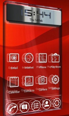 Lo que decía, lo más destacable es la fluidez del launcher y sus vistosos efectos de transparencia, reflejos y 3D, y su capacidad de usar el acelerómetro para mejorar la estética realista del launcher. Por ejemplo, ¿veis el reloj cromado de la imagen de la derecha? Pues ese brillo lo recibirá en ese ángulo, y no en otro, pues dependiendo de la posición del teléfono y de nuestras acciones en pantalla imitará cómo la luz reflejaría en nuestra pantalla.