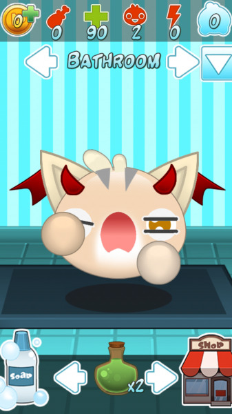 Es un trabajo que al final ha requerido de toda la semana y unos días más. Aquí tenéis unas capturas de pantalla con Petogotchi ya vivo. Ya come, juega, duerme, y se pone enfermo.