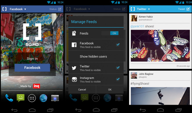 Facebook, Twitter e Instagram en la pantalla de Inicio de tu Android con SO.HO