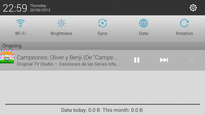 La primera de ellas es que ahora podremos controlar el reproductor directamente desde la barra de notificaciones, tal y como ya permitían otras aplicaciones de audio como Google Play o los reproductores nativos de los fabricantes (Touchwiz, Walkman… etc.). Esta función ha sido demandada durante mucho tiempo por una gran cantidad de usuarios (entre los que me incluyo) por lo que sin lugar a dudas su llegada es una alegría.