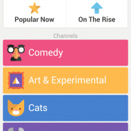 La nueva actualización de Vine se ha definido como «la mayor» hasta ahora, algo que no vamos a discutir. Ya que, por ejemplo, introduce los canales de vídeo. Estos canales dividen las piezas de vídeo en categorías, para encontrar la que mas nos guste fácilmente. Hay diversas divisiones, desde los distintos tipos de mascotas (con gatos y perros separados), a otras como humor o consejos de belleza. Hay una gran variedad, una buena muestra de las posibilidades de la app. Cuando subamos un nuevo vídeo, podemos meterlo en alguna de las categorías existentes.