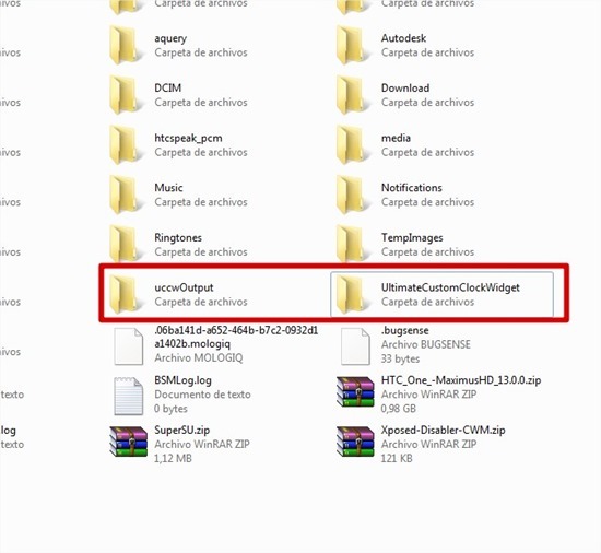 También necesitaremos preparar por primera vez la SD/memoria interna. Esto lo podemos hacer o bien añadiendo un primer widtget nosotros mismos, o bien crear las carpetas uccwOutput y UltimateCustomClockWidget en la raíz de la memoria.