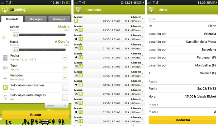 De esta forma tienes la oportunidad de conocer gente y no viajar solo, y quién sabe si encuentras a un gran amigo o a tu media naranja. Por otra parte, también se ayuda a reducir la contaminación ya que según sus estadísticas, han evitado la emisión de 1 millón de toneladas de CO2 a la atmósfera y los usuarios se habrían ahorrado 500 millones de litros de combustible. Así que ya sabes, si quieres ahorrar viajando barato, cómodo y al mismo tiempo conociendo gente, carpooling es una gran opción. Puedes descargar la aplicación de forma gratuita desde Google Play y si quieres conocer más detalles puedes entrar en su Web:
