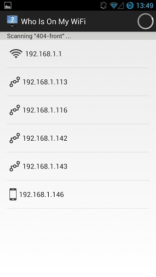 Who is on my Wifi nos permite saber de forma muy fácil qué equipos están conectados a nuestra red, sin excepciones. Encontraremos PCs, portátiles, móviles, tablets, televisiones, lectores de ebook… todo lo que esté conectado a la red. Para conseguirlo solo tenemos que abrir la aplicación, y si estamos conectados a una red, pulsaremos «Scan» y empezará la búsqueda. Para los más entendidos, lo que hace la aplicación es un escaneo de puertos. Si usáis esta herramienta en una red con seguridad adicional, puede hacer que salten las alarmas y alguien os busque enfadado. Si no lo tenéis claro, no lo uséis en redes públicas como el trabajo, la universidad, hospitales o similares.