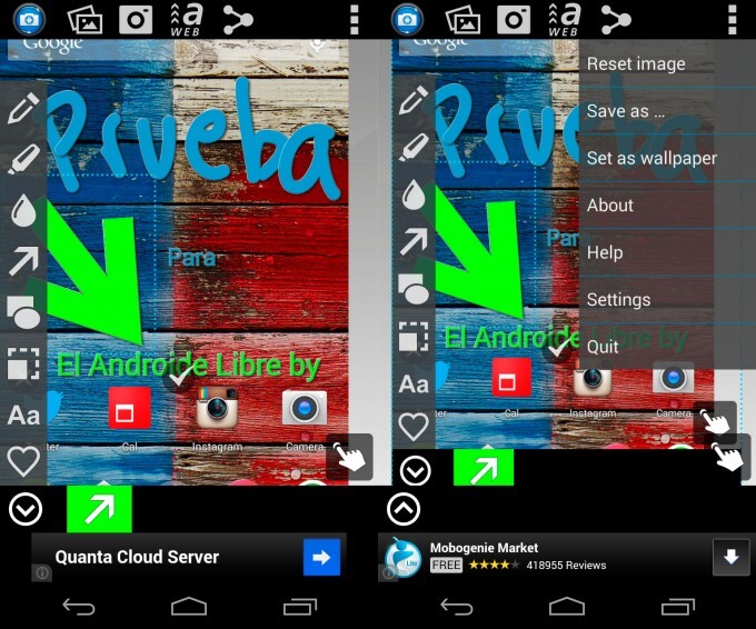No son pocas las veces que algún familiar nos pide consejos sobre su teléfono o tablet Android. Por eso, un método muy utilizado, al menos por mi, es el de mandar capturas de pantalla e ir comentándole los pasos que tiene que hacer. Pues con este editor será mucho más fácil y rápido para ti explicarlo y para la otra persona entenderlo, ya que podrás editar las capturas que hagas marcando, por ejemplo, con números los pasos a seguir.