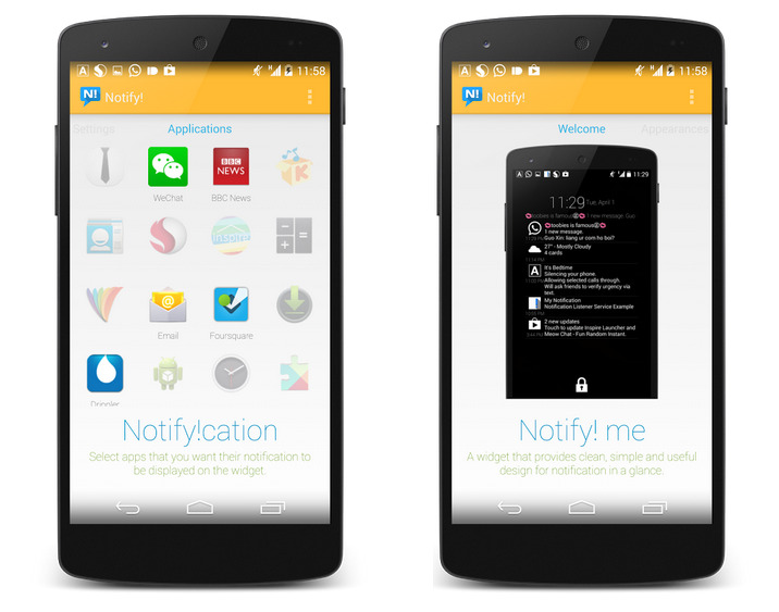 Hoy os presentamos Notify!, otra App con un nombre muy similar, que realiza la misma función aunque de forma más integrada y con un aspecto similar a DashClock, el famoso widget para el lockscreen.