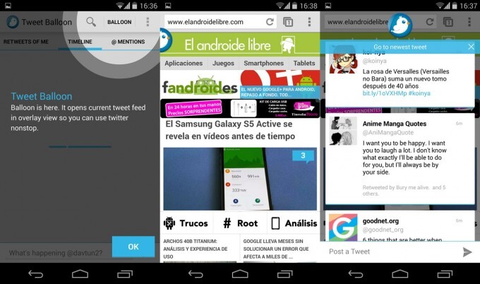 Si tenéis ganas de probar como lucen las burbujas en vuestro Android, podéis instalar Tweet Balloon desde Google Play gratis con sólo tener un dispositivo Android con una versión superior a 4.0 Ice Cream Sandwich.