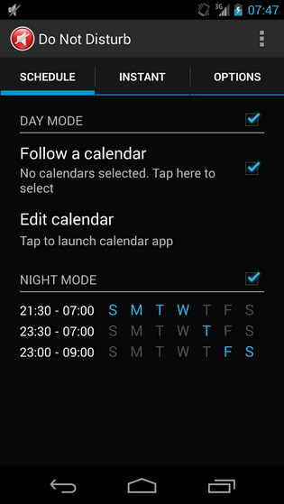 Una aplicación un poco más simple que la anterior pero que su cometido es el mismo, librarnos de notificaciones y llamadas durante el tiempo que queramos. Como vemos por el nombre, está destinado principalmente a hacer que nuestras horas de sueño no se vean interrumpidas por llamadas o notificaciones varias, pero también se pueden configurar ciertos intervalos durante el día en el caso de que estemos reunidos.