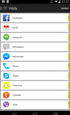 En sus ajustes podemos cambiar eso y también que Vibify se desactive cuando el nivel de batería es bajo. El funcionamiento es muy sencillo, tan sólo abrimos la App y escogemos qué aplicaciones de las que tenemos instaladas en nuestro dispositivo queremos que se integren con Vibify. Un concepto diferente, aunque todavía se encuentra en fase beta y debe mejorar mucho.