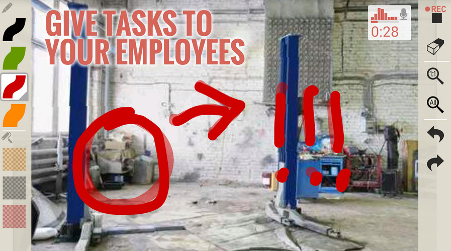Su objetivo es facilitarnos las explicaciones con una mecánica de funcionamiento muy sencilla: basta con hacer una foto y hacer las indicaciones necesarias sobre ella con diferentes herramientas de dibujo (pinceles de diferentes colores, grosores y opacidad), pero no se queda sólo ahí, sino que mientras hacemos esto, la aplicación grabará todo lo que digamos, de forma que nos quedará un miniclip con los pasos a seguir dibujados y narrados por nosotros.
