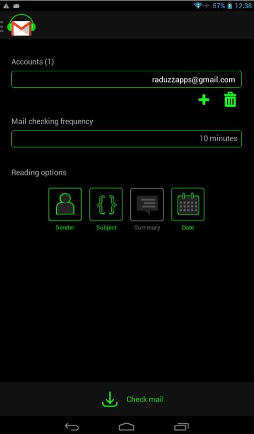 Reader for Gmail es un lector de nuestra bandeja de entrada de Gmail. Es decir, utiliza el sintetizador de voz de Android para leernos los emails que aún no hemos leído. Puede ser tanto de forma automática como manual.