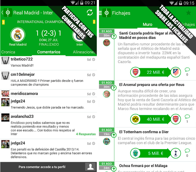 Todavía con la resaca de la Supercopa, hoy da comienzo la Liga de Primera División en España y también en muchos otros países (aunque algunos ya llevan varias jornadas). Seguro que muchos echabais de menos esos fines de semana con fútbol, aunque al menos este año hemos tenido Mundial. Para esta temporada que comienza, es probable que no podamos ver en directo todos los partidos y que se nos escapen algunas noticias de actualidad; nuestro Android puede ser la mejor solución ante esto.