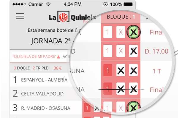 Gracias a esta nueva aplicación podremos introducir y guardar nuestras quinielas, obtendremos ayudas a la hora de escoger los resultados ya que obtendremos estadísticas sobre cada partido, podremos validar nuestras quinielas desde la misma app, seguir en directo los resultados y recibir notificaciones sobre todo lo que nos interese.