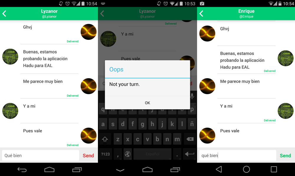 Se trata de Hadu, una app de mensajería sencilla en la que podremos registrarnos fácilmente, buscar a gente por su nick e iniciar una conversación. Sin embargo para que esta avance únicamente podrá ser si los dos usuarios contestan. Un único mensaje cada vez por persona. Una pregunta, una respuesta. Nada de los pesados de turnos que envían 50 mensajes o iniciar una conversación si la otra persona todavía ni te ha saludado.