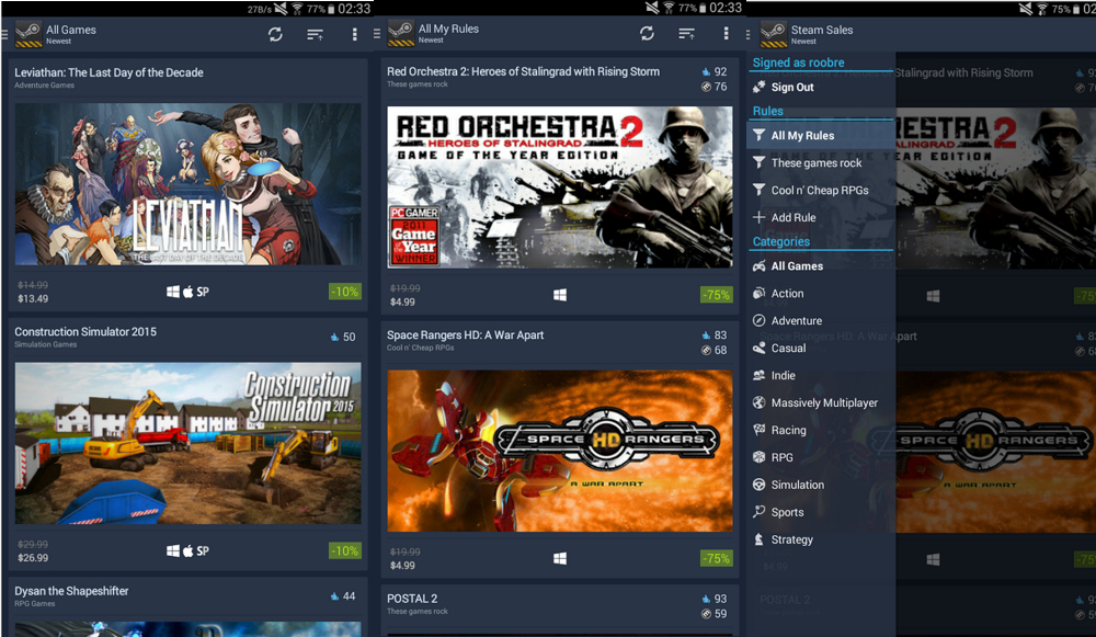 Como decimos, nada mejor que esta semana para poner de manifiesto Steam Sales, una aplicación en la que podremos seguir de cerca las distintas actualizaciones de Steam y las mejores ofertas. Podremos crear reglas y filtros para recibir notificaciones push cuando algún juego nuevo entre dentro de nuestros gustos.