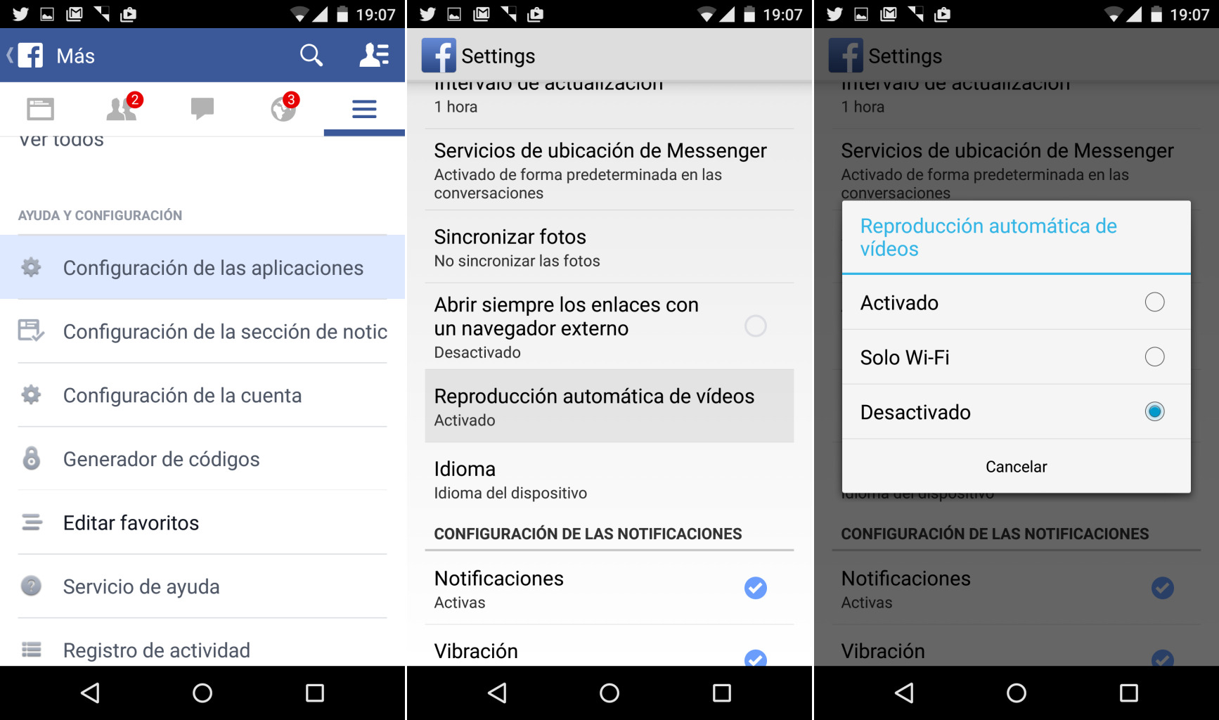 Si habéis seguido los pasos, ya deberíais tener el comportamiento de la aplicación a vuestro gusto. Además, aprovechando que hemos entrado en estos ajustes, podemos configurar otros apartados como si queremos sincronizar fotos, el chat de Facebook que queramos utilizar, los intervalos de actualización, o si queremos abrir enlaces en un navegador interno o externo.