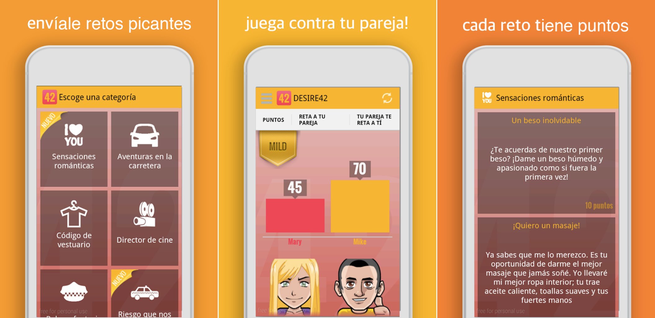 ¿Estás cansado de hacer lo mismo de siempre con tu pareja? ¿Quieres retar a tu chic@ a hacer cosas nuevas? Entonces no te pierdas Desire42, una aplicación para retar a tu pareja a hacer cualquier cosa que se te ocurra.