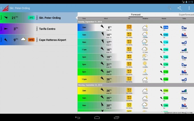 Si no eres marinero o le das a deportes como el surf, el windsurf o el parapente, entonces no vas a encontrar una aplicación de mucha utilidad en Windfinder. Sin embargo, si haces alguna de esas cosas a lo largo del día, puede convertirse en el mejor compañero que puedas llevar en tu Android para estar prevenido. Tiene previsiones para más de 35.000 lugares, y obtiene datos de más de 10.000 estaciones meteorológicas repartidas por todo el mundo.