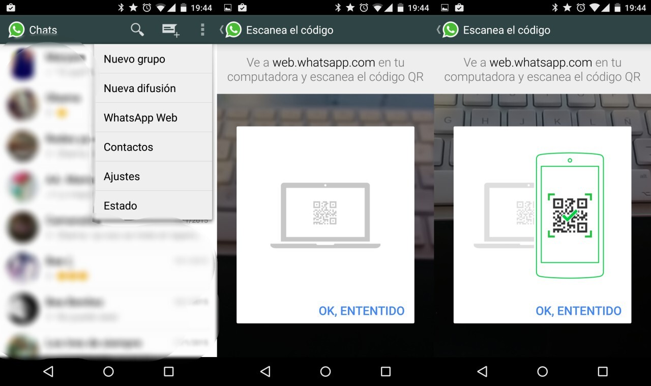 2. Nos pedirá que entremos a web.whatsapp.com desde nuestro ordenador con Google Chrome, y escaneemos el código QR que aparecerá en la pantalla