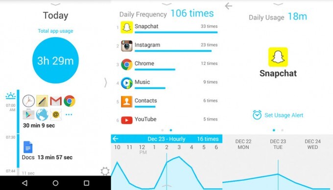 Como Checky, nos informará de la cantidad de veces que hemos desbloqueado la pantalla, y además un cronómetro nos indicará el tiempo que lo hemos estado usando. Pero la cosa no acaba ahí, la aplicación nos indicará cuánto tiempo hemos usado cada aplicación, pudiendo consultar esta información de con informes diarios, semanales o mensuales.