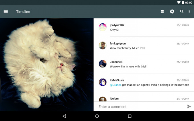 Y así es como llega Seene, una sencilla aplicación que apunta maneras. Disfruta de un funcionamiento similar a Instagram, pero con un diseño mucho más cuidado, siguiendo las pautas que marca Google con Material design.