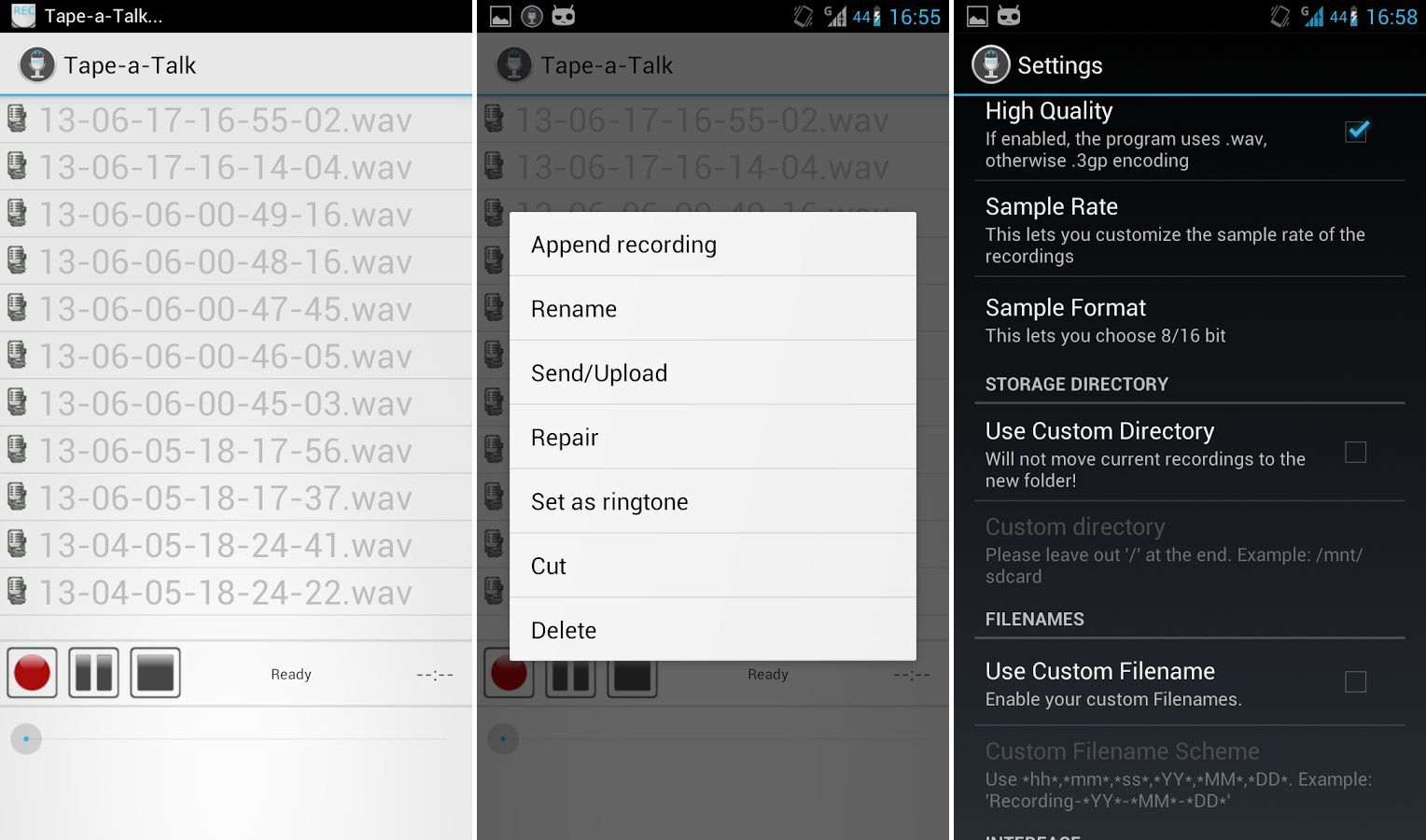 Tape-a-Talk es una aplicación imprescindible si grabas sonidos muy a menudo con tu Android: muchísimas opciones tanto a la hora de grabar como al manejar todas las grabaciones que tengamos, sin olvidarnos de compartir las grabaciones con las que terminemos. Además, cuenta con un diseño bonito y es gratis.