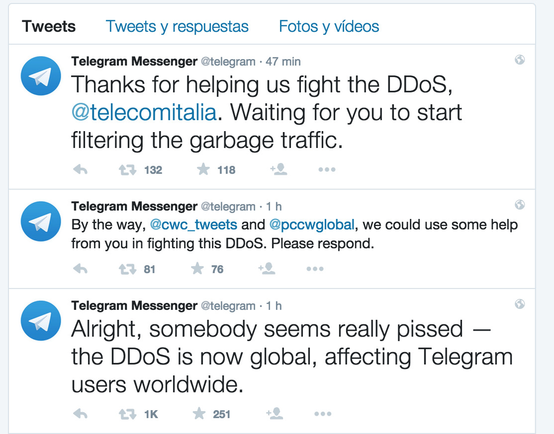 Desde Telegram ya han pedido ayuda públicamente a operadoras implicadas (indirectamente) en el ataque, mientras que una operadora italiana ya se ha prestado a ayudar a combatir ese nuevo ataque. Mientras, el servicio será intermitente hasta que consigan mitigar el ataque, así que sólo nos queda esperar.