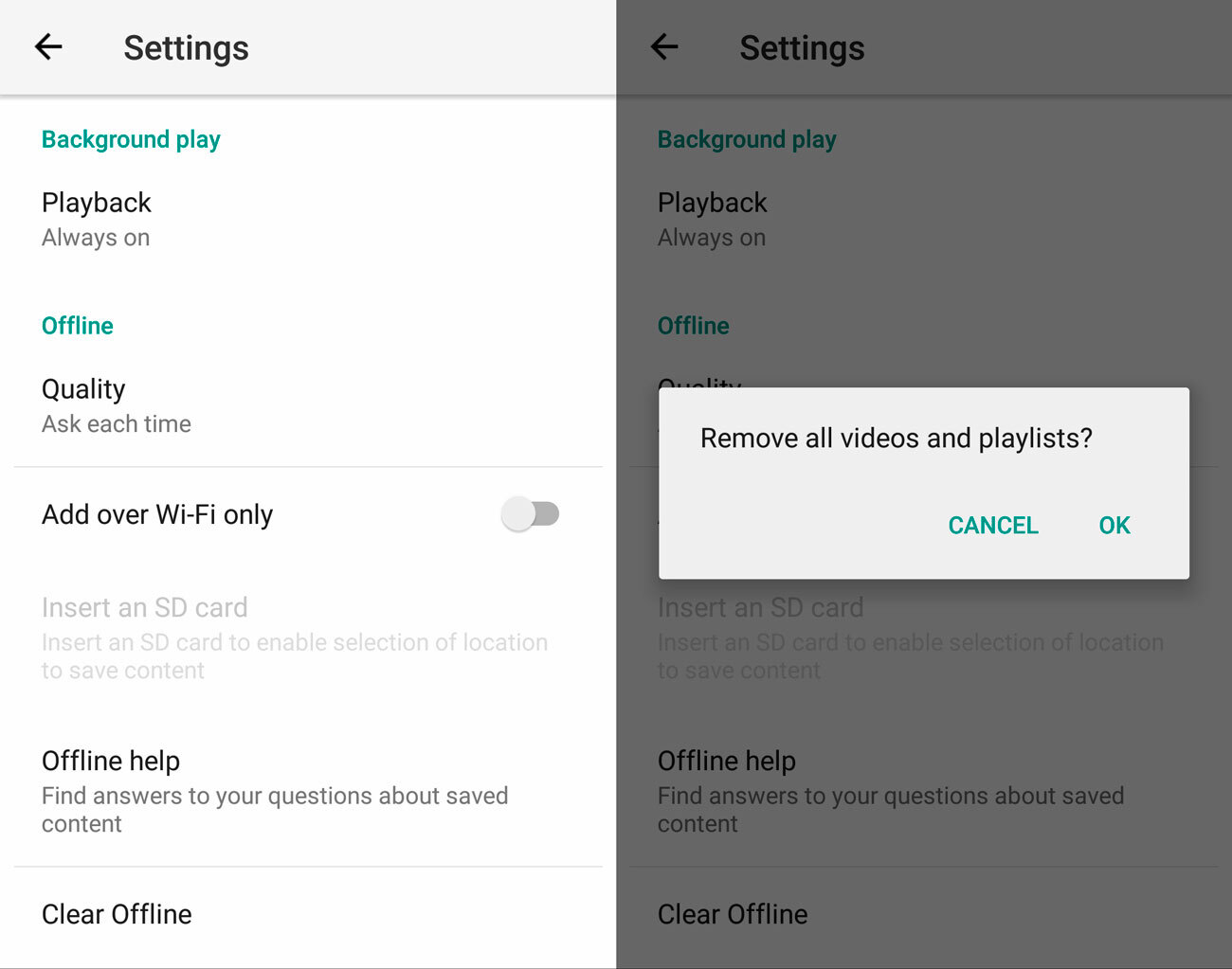 De momento esta opción está escondida entre las opciones. Tienes que ir al menú, entrar en ajustes, en offline y ahí presionar sobre «limpiar offline». Se trata de una gran opción, pero tendría mucho más sentido incluirla en la lista de videos guardados, esperemos que Google decida mudarla en versiones futuras o cuando esta opción llegue finalmente a Play Store.