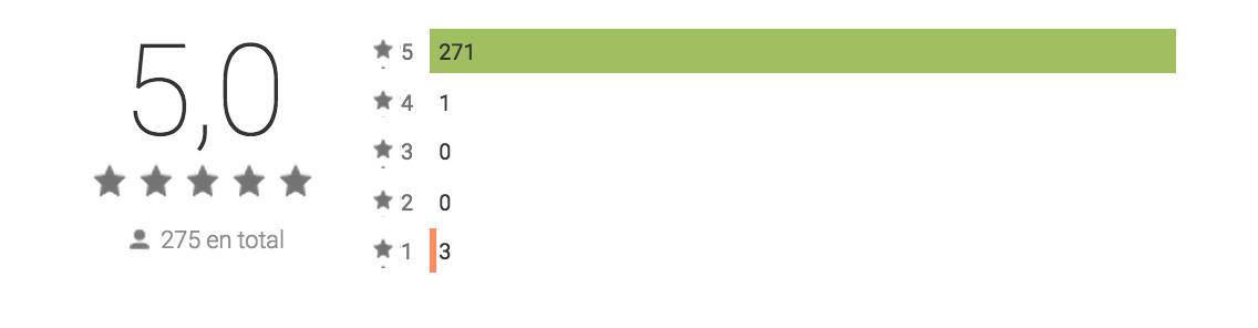 ¿Lo mejor? Las puntuaciones. El autor está recibiendo centenares de puntuaciones con 5 estrellas y solo unos cuantos herejes la han puntuado negativo. Algunos dirán, la aplicación no vale nada. Y tienen razón. Pero en Google Play no siempre se recompensa la calidad, también influye mucho la popularidad inicial o quién está detrás.