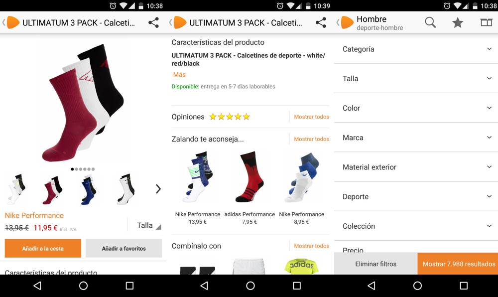 En total más de 1500 marcas que la aplicación clasifica de forma elegante. Tendremos una imagen de cada producto en grande para verlas de un vistazo, una breve descripción, comentarios, más información y sugerencias. Zalando nos permite ordenar los productos por precios, novedades u ofertas así como filtrar la lista por tallas, color, material, precio o colecciones.