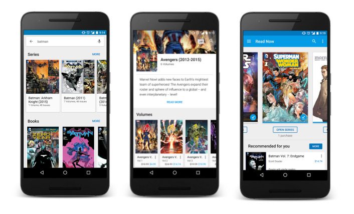 Además, Play Books también ha mejorado sus herramientas para encontrar nuevas historietas, organizándolas por series, volúmenes, números y distintas ediciones. Otra novedad que han incluido los de Mountain View son las recomendaciones basadas en tus gustos, de forma que te será más sencillo descubrir nuevas series y personajes.