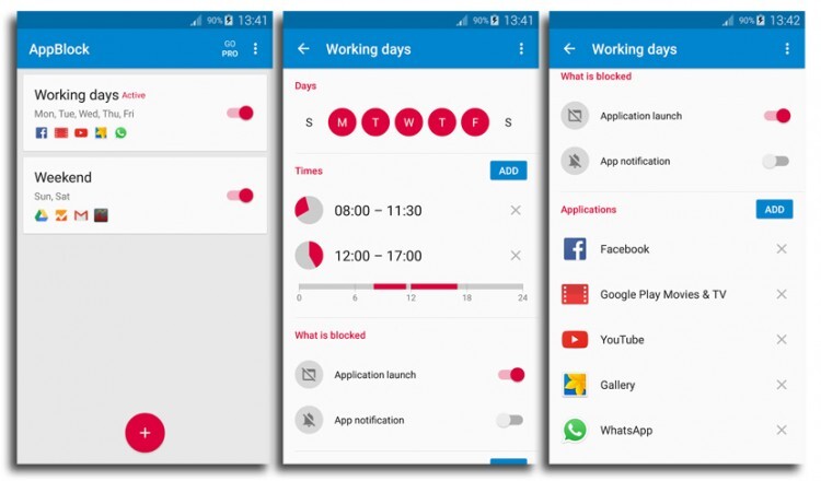 Si bien es cierto que en la mayoría de centros de trabajo o de estudios encontramos la mayoría de estos sitios «capados», también lo es el hecho de que la mayoría llevamos un teléfono movil mediante el cual podemos distraernos igualmente. Para evitar estas distracciones está Appblock, una aplicación que nos permitirá bloquear determinadas aplicaciones en los diferentes tramos horarios.