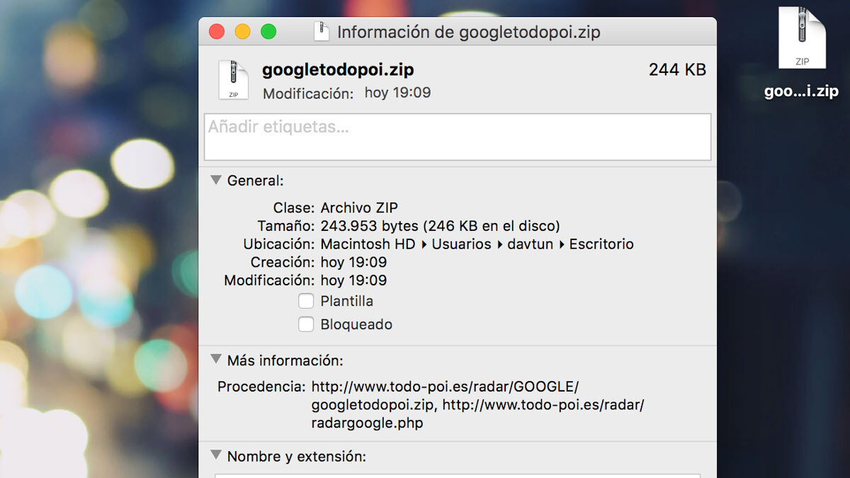 • Volvemos al archivo ZIP que hemos descargado antes y lo descomprimimos: dentro nos encontraremos una advertencia legal y varias bases de datos KML, como podéis ver en la captura.