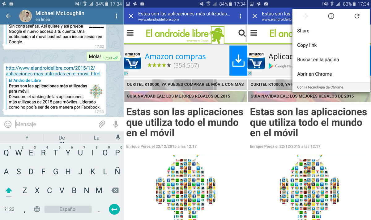 Para funcionar, Chromer sólo necesita convertirse en nuestro navegador por defecto, o seleccionarlo cada vez que pulsemos sobre un enlace. Cuando lo hagamos, y pulsemos a un enlace dentro de una aplicación, la página web se abrirá dentro de la aplicación en la que estemos, no abrirá una nueva aplicación de navegador en la multitarea.
