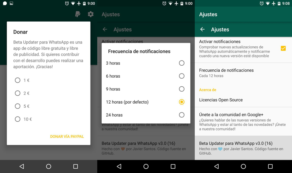 De hecho, la aplicación también permite automatizar la descarga de las actualizaciones, eligiendo incluso la frecuencia con la que nos notificará que hay una nueva versión. Eso sí, si establecemos el tiempo muy corto la batería en segundo plano será ligeramente mayor.