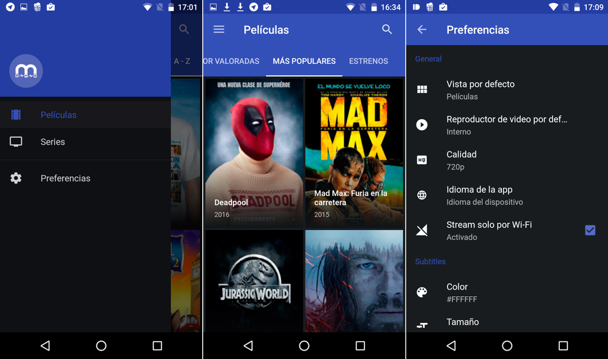 La aplicación, después de aceptar los términos de uso, es simple: se muestra el contenido con su portada en diferentes secciones, además de poder dividir entre series y películas. Cuenta con una búsqueda para encontrar títulos más concretos, y es pulsar un botón para comenzar con la reproducción, aunque mantiene unas cuantas reminiscencias de Popcorn Time, como se puede apreciar en las capturas.