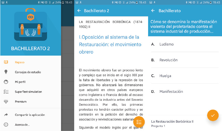Pues bien, si es tu caso, la aplicación «Bachillerato 2016» te ayudará puesto que incluye gran cantidad de resúmenes sobre las diferentes asignaturas de segundo de bachillerato (¡y de primero!) y consejos para afrontar los exámenes y el estudio para éstos. También te servirá para ponerte a prueba gracias a los tests que incluye sobre las diferentes asignaturas. Sin duda bastante completa y con un buen diseño y manera de funcionar.