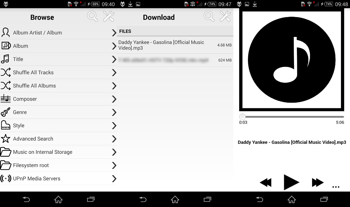 Nada más abrir la aplicación, lo primero que nos encontramos es un directorio de todas las carpetas disponibles en nuestro dispositivo, incluyendo carpetas que organizan automáticamente las canciones por artista, álbum o título. La interfaz brilla por su sencillez, y estamos seguros de que ni los móviles de más baja gama tendrán problemas para moverla con fluidez.