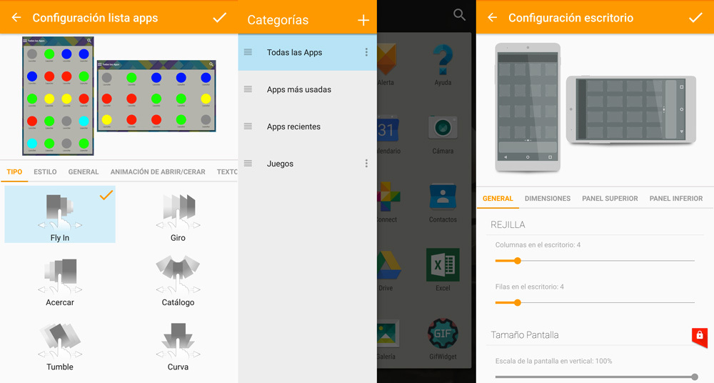 Una de las opciones más llamativas es la posibilidad de configurar el cajón de aplicaciones, estableciendo categorías de apps para que sea más fácil su búsqueda (podemos, por ejemplo, organizar todos los juegos en una carpeta que responda al nombre de «Juegos»).