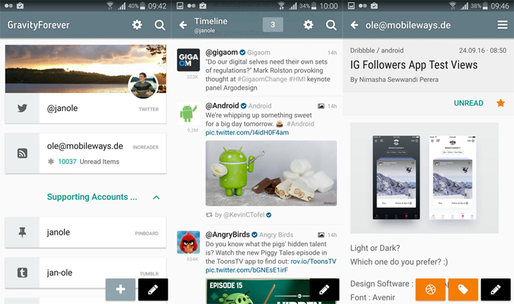 Los ex-usuarios de Symbian -así como también los aventurados usuarios todavía activos de Nokia- recordarán con cariño la mítica aplicación de Gravity Forever, la cual permitía gestionar desde el mismo sitio tanto nuestra cuenta de Twitter como nuestros lectores favoritos de feeds (RSS). Ahora, GravityForever acaba de llegar a Android, y ya se encuentra disponible para su descarga en la tienda de Google Play.
