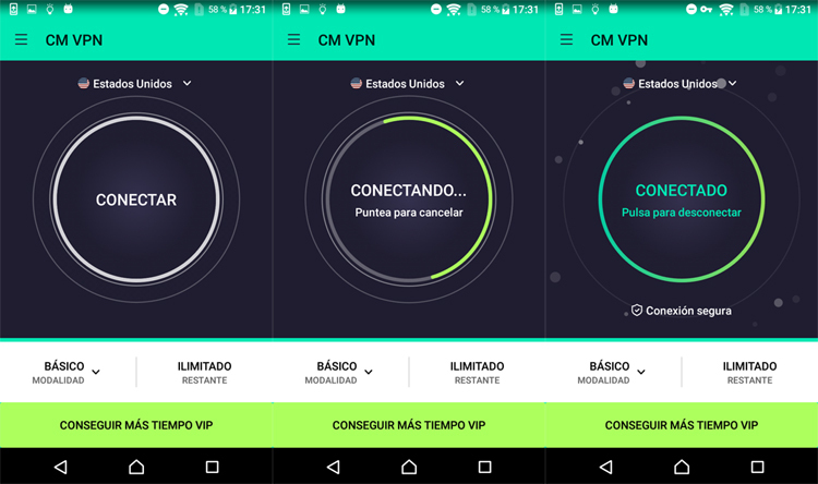 Llegamos al quid de la cuestión: ¿hay alguna diferencia entre el modo básico de VPN de CM y el modo VIP? La modalidad VIP se anuncia con el texto de «Estable, veloz y con limitaciones de tiempo«, por lo que es de suponer que es mejor que la modalidad básica. En la práctica, eso es cierto a medias.