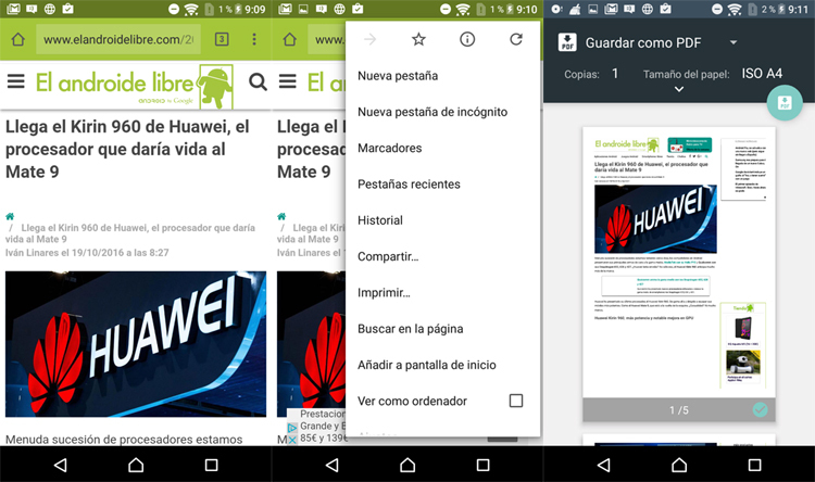 El navegador web que trae tu teléfono permite guardar una página en formato PDF sin necesidad de instalar ninguna app. Mira cómo se hace.