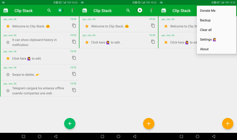 Algo tan sencillo como copiar y pegar ahorra un enorme trabajo. Tener una lista con todos los elementos copiados quizá no sea tan necesario en el móvil como en un ordenador, más familiarizado con las aplicaciones de ofimática, pero no por eso le sacarás menos partido a Clip Stack. la aplicación llevará el recuento de todos los elementos copiados poniéndolos en una cómoda lista.