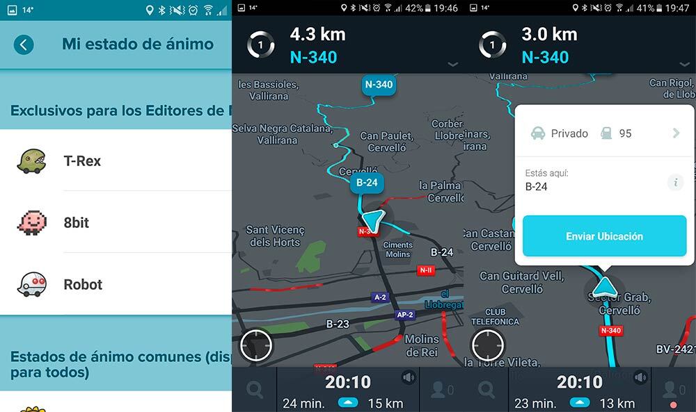 Aparte del avatar con los coches con diferentes formas y colores, Waze permite elegir entre diversas voces y, además, incluye de vez en cuando tonos curiosos (como el de C3-PO con el lanzamiento de Star Wars episodio VII). Alertas de velocidad, búsqueda por voz, puntos de interés, gestión de favoritos que se queda guardada en la cuenta… No creas que por ser gratuito anda falto de opciones.